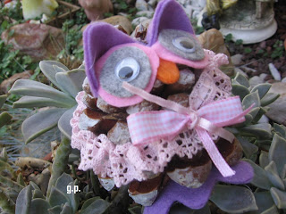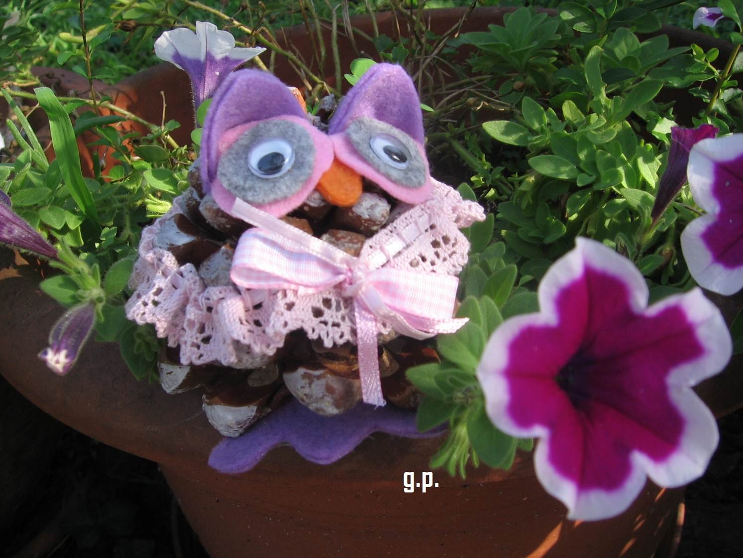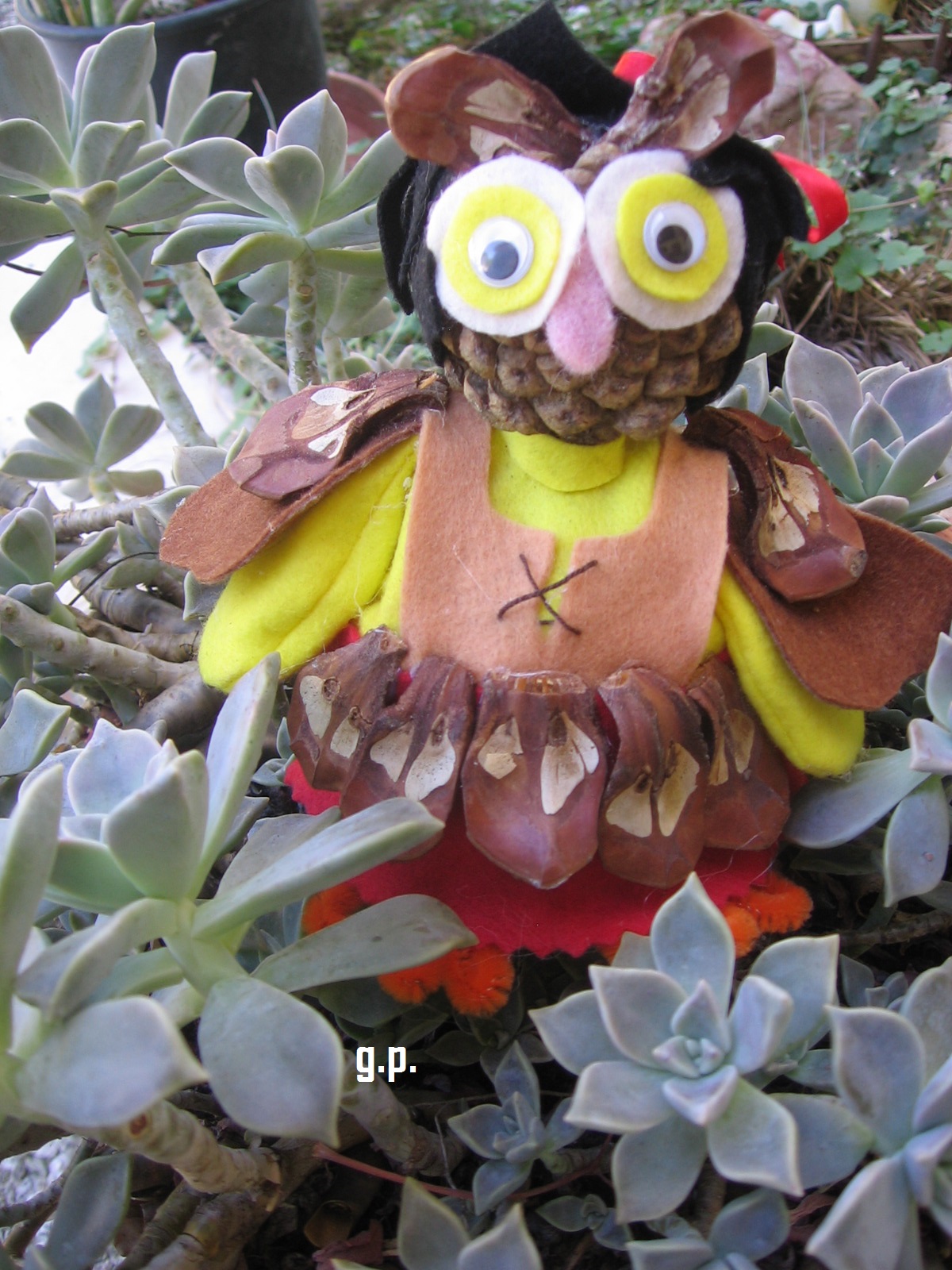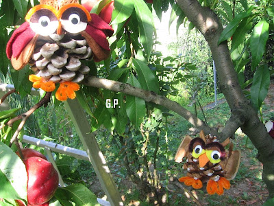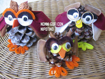 E' stato in ferie Matteo un mio pronipote di 11 anni e vedendo che io nel tempo libero mi dedicavo alle creazioni di gufi ed altro mi ha chiesto se poteva anche Lui creare qualcosa e guardate cosa ha fatto.