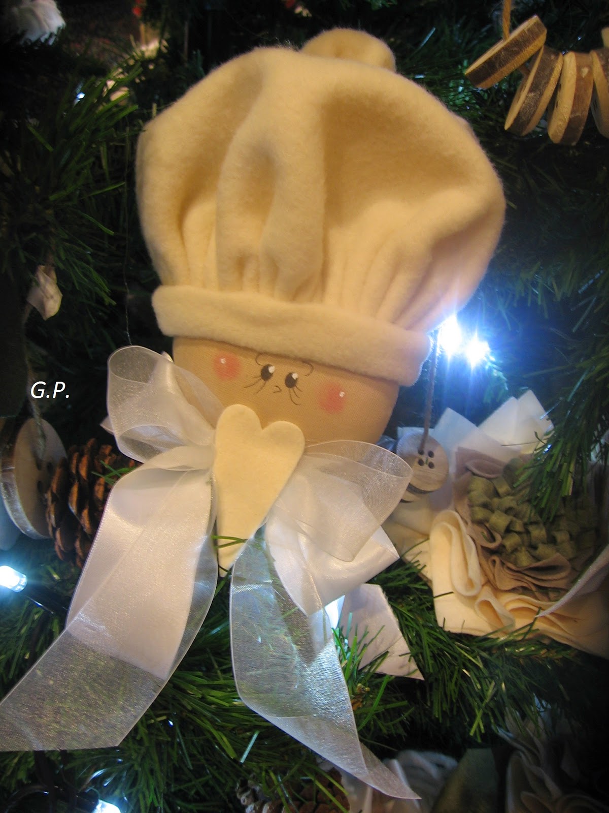 realizzata con feltro, stoffa, bottone, nastri vari per abbellimento.....