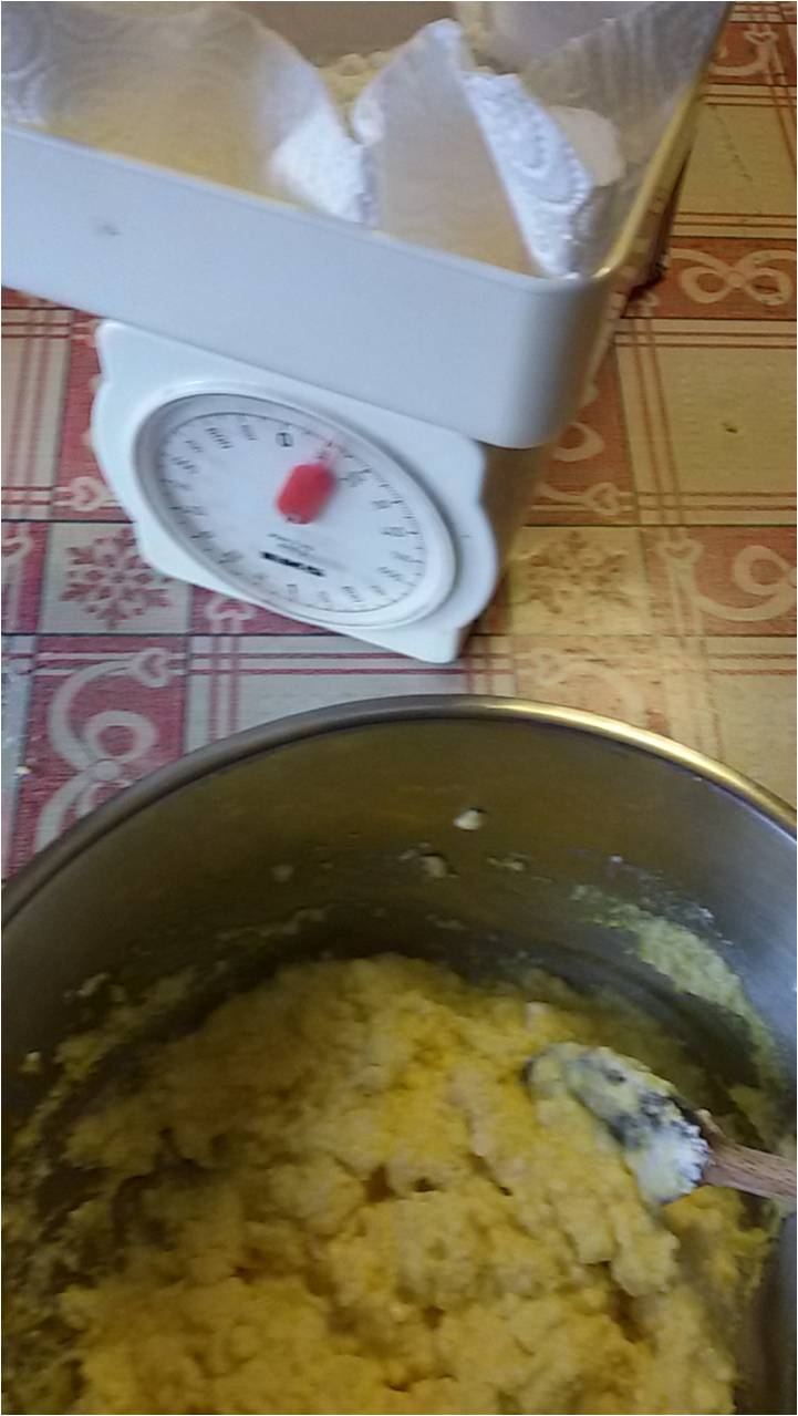 Mischiare ricotta, uovo, buccia grattuggiata, lievito, vaniglina e liquore...