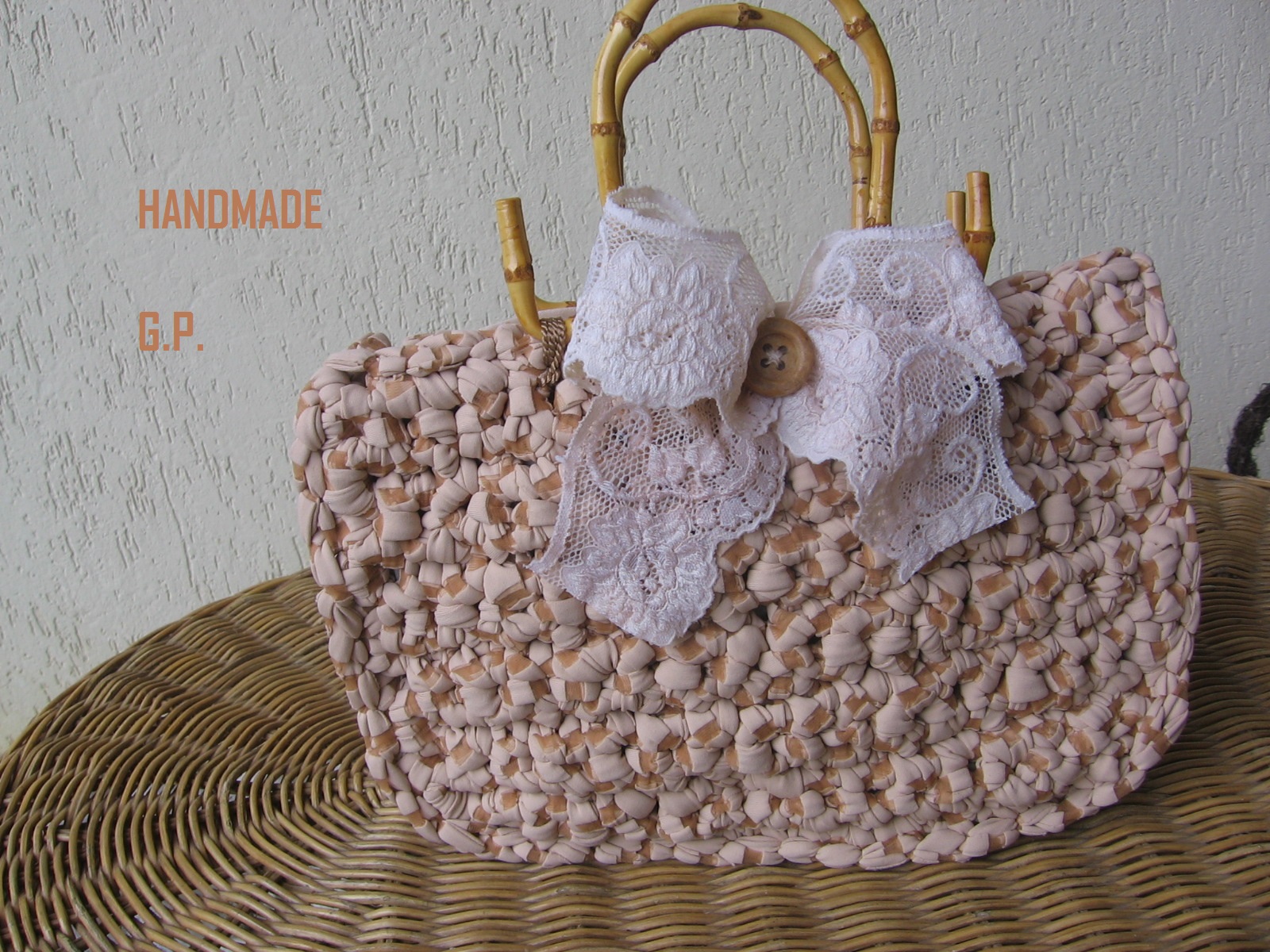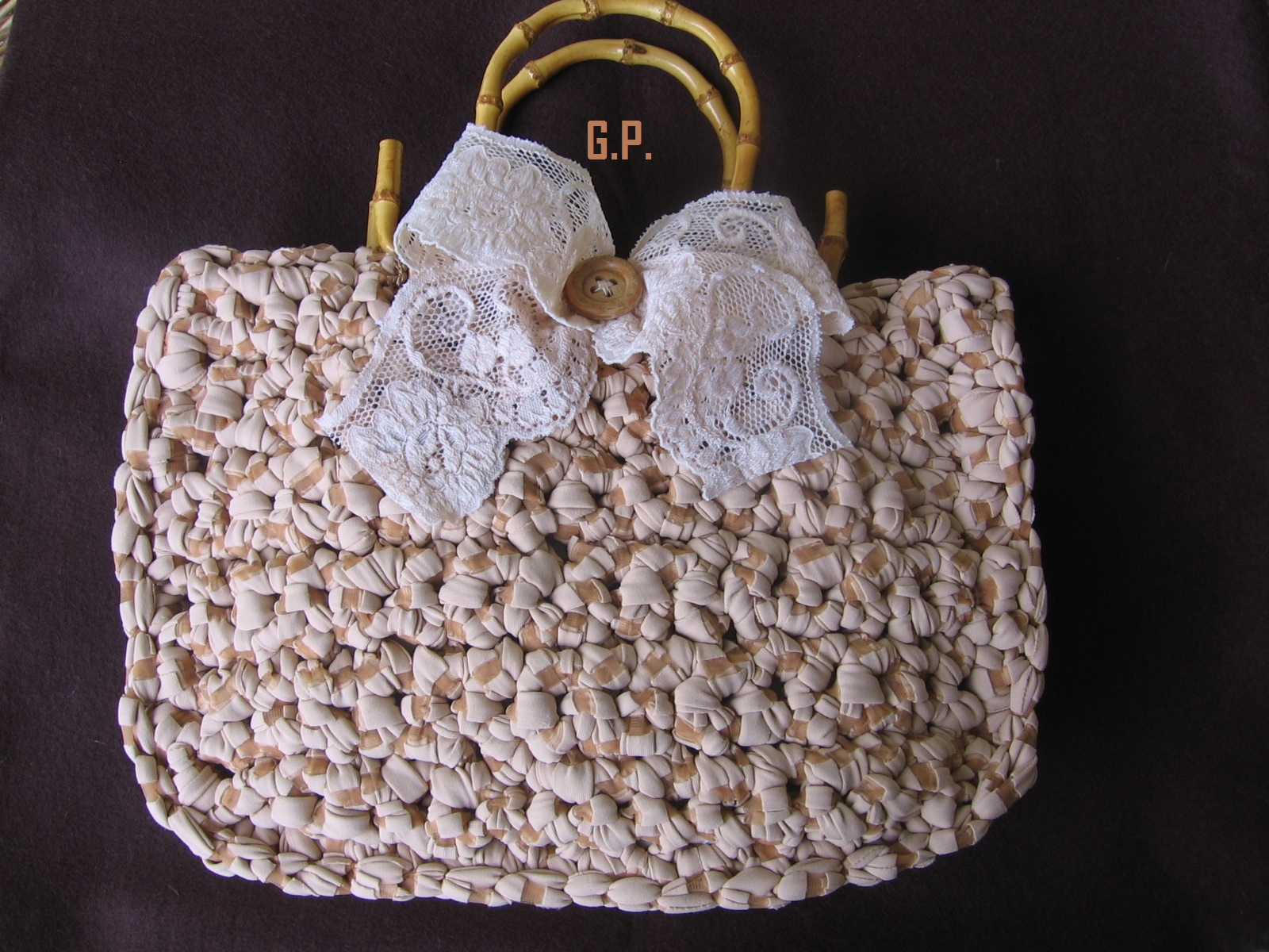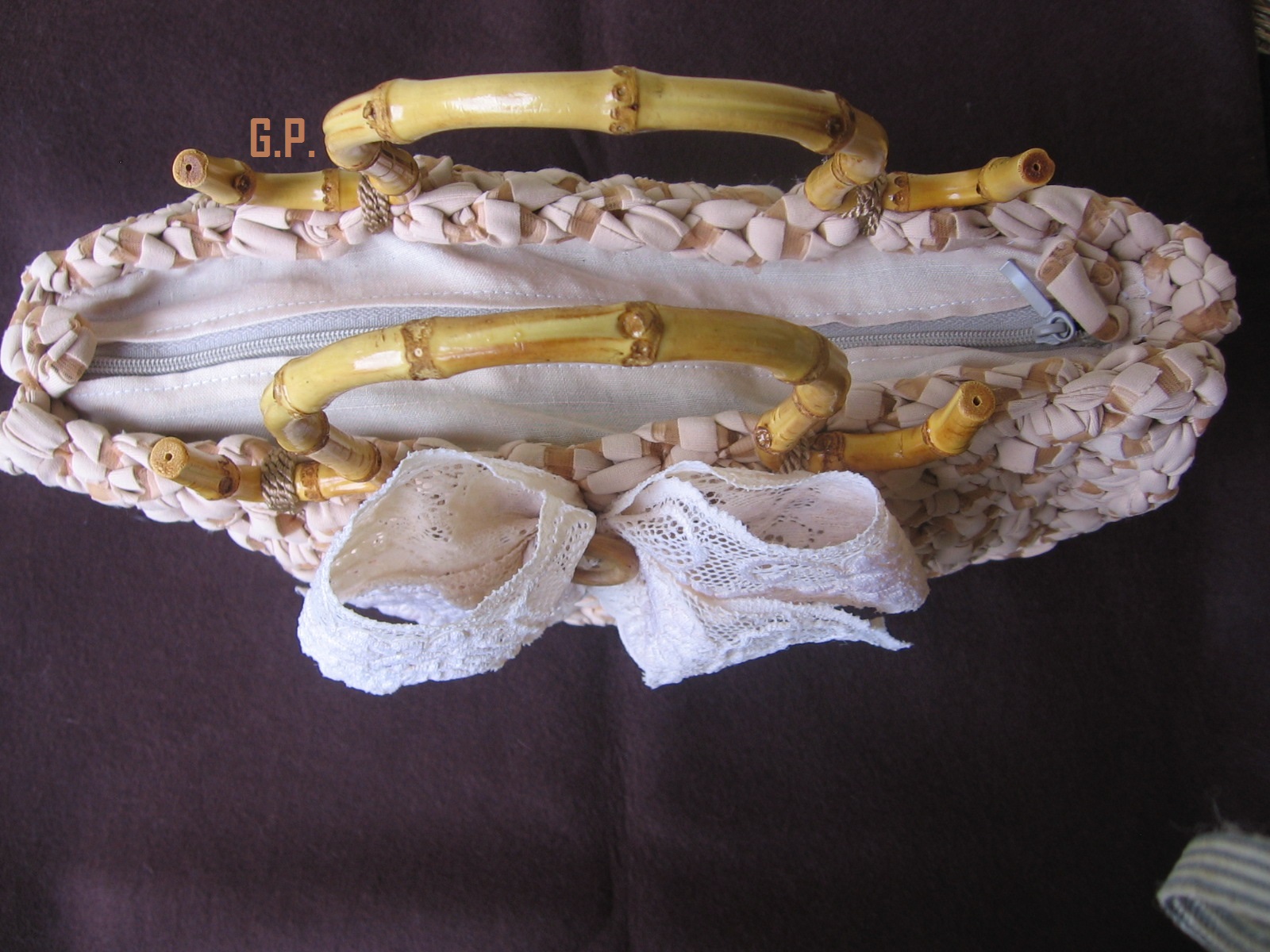 Con un rotolo di lycra un paio di manici di bamboo, una cerniera, un pezzetto di stoffa interna, un pezzetto di pizzo ed un bottone ecco il risultato.